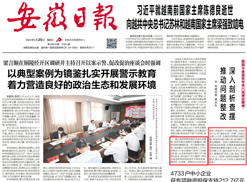 近日,《安徽日報》聚焦全省深入貫徹中央八項規(guī)定精神學(xué)習(xí)教育成效,在頭版文章中對縣醫(yī)院深化作風(fēng)建設(shè)、優(yōu)化醫(yī)療服務(wù)的創(chuàng)新舉措給予了肯定。作為全縣醫(yī)療衛(wèi)生服務(wù)的重要窗口,縣醫(yī)院始終堅持以群眾滿意為工作導(dǎo)向,積極推動作風(fēng)建設(shè),提升醫(yī)療服務(wù)水平。