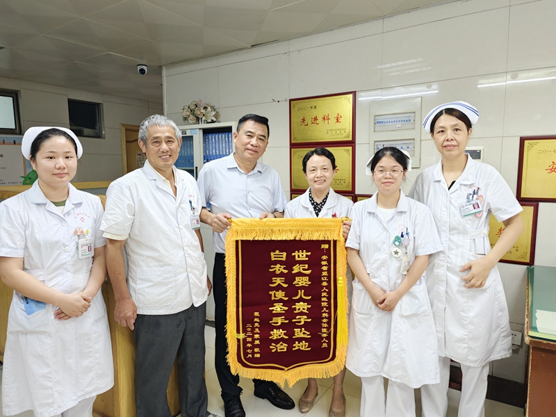 據(jù)了解,這位先生姓程,是我縣雷池鎮(zhèn)東洲村人。1997年,他女兒在家出生后情況不是太好,家人焦急萬分,于是匆忙趕來縣醫(yī)院兒科救治,經(jīng)過兒科醫(yī)護人員精心治療和護理,四天后順利康復出院。程先生長期生活居住在海南,女兒已經(jīng)27歲,非常健康,他一直心存感激,想著要來醫(yī)院表達感激之情,趁這次回鄉(xiāng)之際,他專程訂制錦旗趕來醫(yī)院完成自己多年的心愿。