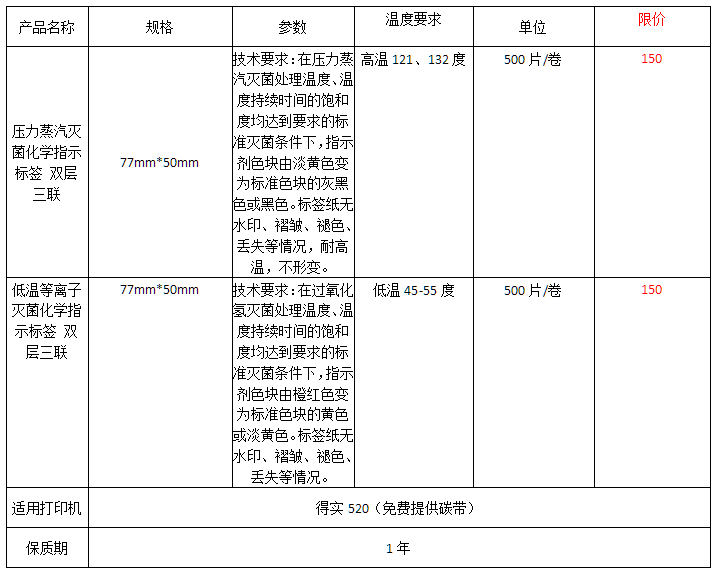 本次針對(duì)望江縣人民醫(yī)院消毒供應(yīng)室采購高溫及低溫消毒標(biāo)簽紙,并要求提供本地售后服務(wù)。